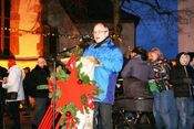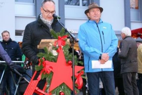 Beim stimmungsvollen Adventssingen auf dem Kirchplatz in Eggenstein weihten Ortskartellvorsitzender Mario Schönleber und Bürgermeister Stober gemeinsam den neuen Vereins- und Gewerbebaum aus rund 2,5 Tonnen Stahl ein. Unsere örtlichen Kulturvereine gestalteten ein erhebendes Programm beim traditionellen Adventssingen, Pfarrer Boch sprach das geistliche Wort und Bernd Stober das politische. Alle Helfer arbeiteten ehrenamtlich, die Erlöse fließen sozialen Zwecken zu, ebenso wie die Einnahmen des Vereins "Der Freundeskreis".