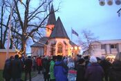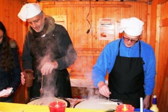 In diesem schön beleuchteten, kulturellen und kulinarischen Ambiente fanden sich Freunde und Bekannte zu zwanglosen Gesprächen zusammen. Alle Helfer engagierten sich ehrenamtlich, die Erlöse fließen sozialen Zwecken zu, ebenso wie die Einnahmen des Freundeskreises Eggenstein, die ihre handgefertigten Holzarbeiten feil boten. Den Ausklang mit Gänsehauteffekt bildete das gemeinsame Singen aller Besucher von „Stille Nacht“.