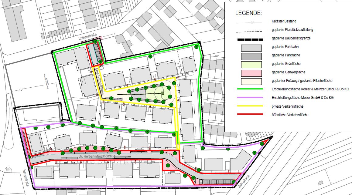 durchgehende, zukünftig öffentliche Straße namens Dr. Herbert-Mrozik-Straße (Hausarzt)