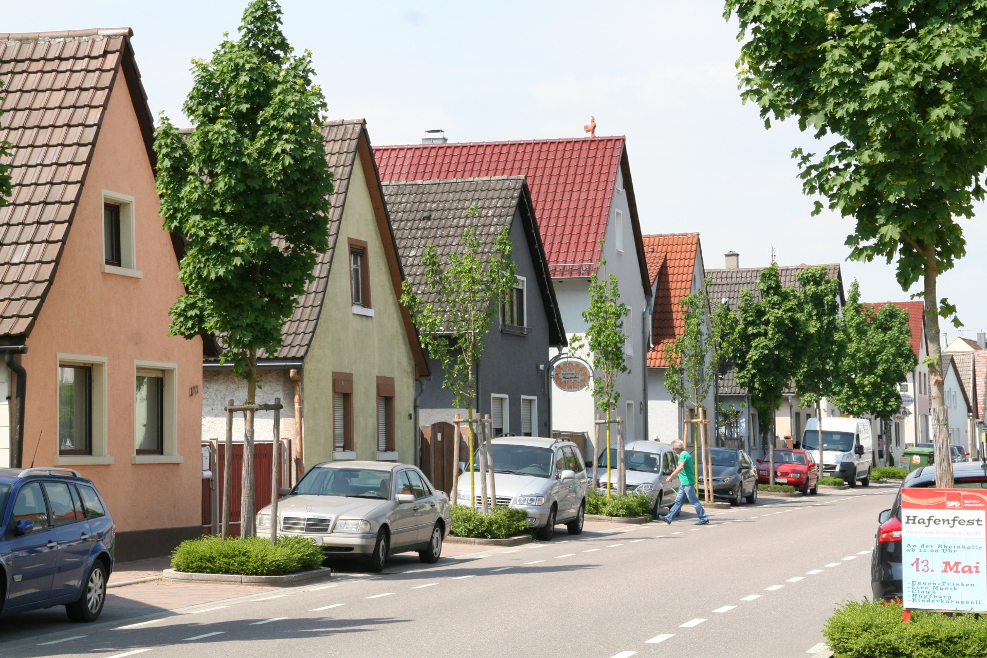 nur durch ihr sattes Grün das Erscheinungsbild. Sie beschatten Gehweg und