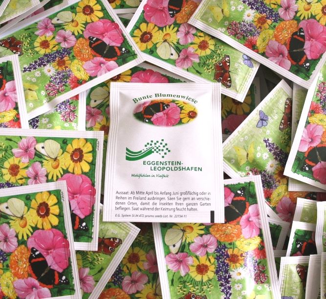 Im Rathaus werden wie bereits letztes Jahr Tütchen mit Samenkörnern zum Einsäen einer kleinen Blumenwiese verschenkt (3 Tütchen pro Person), solange der Vorrat reicht.