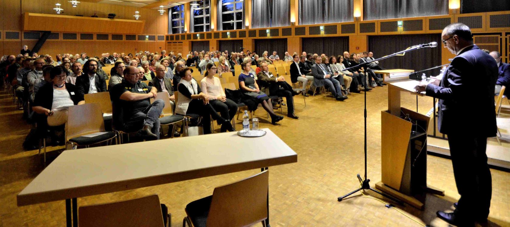 „Es freut mich, dass so viele von Ihnen heute ihr Interesse an der Entwicklung unserer Gemeinde bekunden.“, begann Bürgermeister Stober den offiziellen Teil der Einwohnerversammlung und ließ seinen Blick über die gut gefüllte Rheinhalle schweifen.