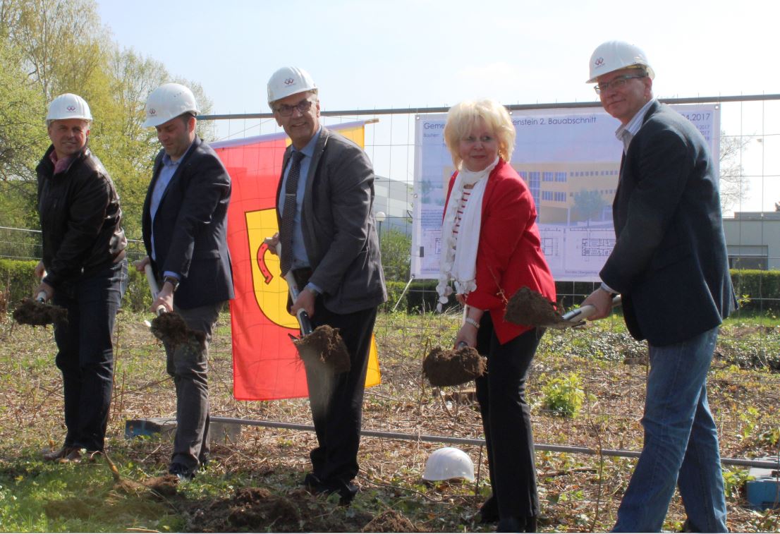 Die Bauarbeiten für einen 3. Gebäudezug der Gemeinschaftsschule wurden mit einem gemeinsamen Spatenstich eingeleitet. Nach dem Umbau im Bestand folgt jetzt der zweite Bauabschnitt mit dem Neubau. Dafür hat die Gemeinde inklusive der Ausstattung und der Mensa im Untergeschoss einen Betrag von rund 7,8 Mio. € im Haushalt eingeplant, nachdem der Umbau bereits 2,1 Mio. € gekostet hat. Mit 9,9 Mio. € ist das Projekt eines der größten unserer Gemeinde.