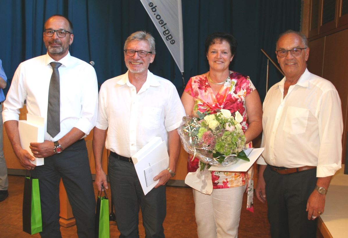 Bürgermeister Stober bedankte sich bei Petra Beckert, die seit 2004 ununterbrochen dem Gemeinderat angehörte, Hardy Hecker, der im Juli 2018 in der CDU-Fraktion Ralf Buschmann folgte, sowie bei Jochen Bolz und Heinz Peter Bahr.