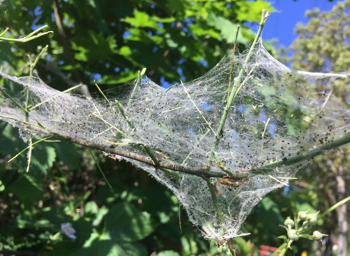 weil sie dichte Gespinste an Bäumen und Sträuchern beobachten, beispielsweise