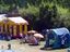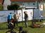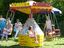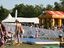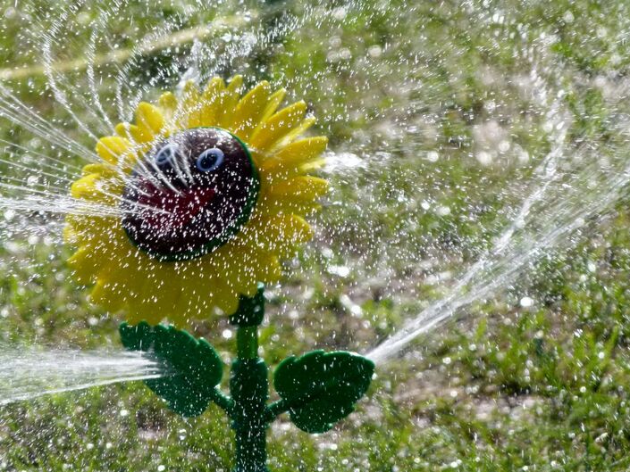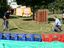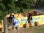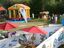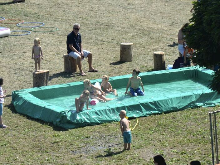 Planschbecken, vielen Spielgeräten, die zu Bewegung animieren wie