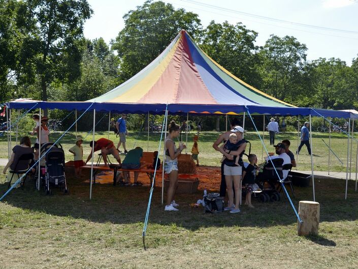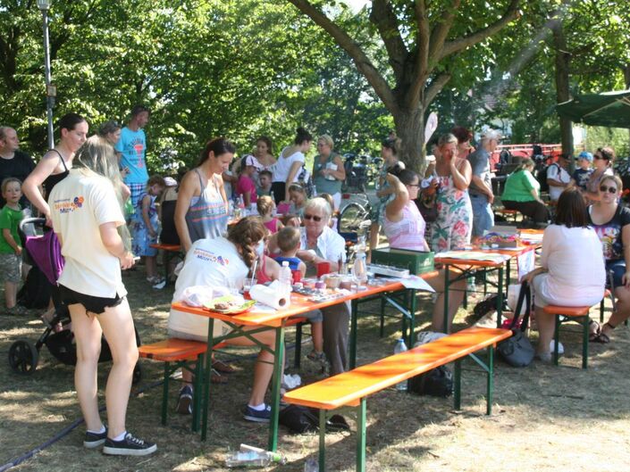 Welch ein Wochenende im Jubiläumsjahr. So viel lebhaftes Treiben gab es im Bürgerpark noch nicht. Überall Kinder, die zusammen mit ihren Eltern die vielen Angebote erforschten. Das größte Jubiläumsfest der Gemeinde für Kinder war ein voller Erfolg und ruft nach Wiederholung.