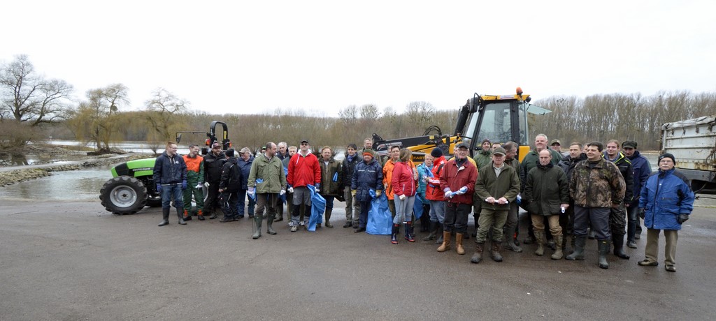 Selten war der Rhein so niedrig. Dies war die beste Gelegenheit den meist überschwemmten Wald zwischen Rhein und Rheindamm zu säubern. Rund 60 Umweltfreunde, Angler, Jäger und hilfsbereite Bürger sind der kurzfristigen Aufforderung gefolgt und haben jede Menge Müll zusammengetragen. Tolle Aktion. Danke.