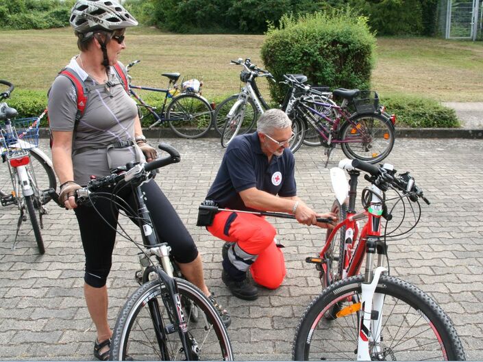 Feuerwehr, des DRK und der DLRG bei, die den Fußmarsch zur Ersatzhaltestelle
