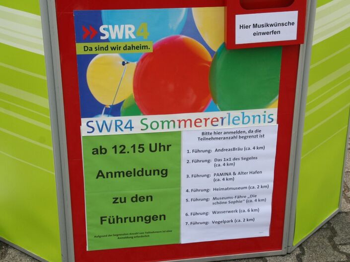Am 19.8. hieß es "Finale" beim Sommererlebnis des SWR4 in Leopoldshafen. Körper, Geist und Seele wurden verwöhnt. Ein vergnüglicher Nachmittag mit abwechslungsreichem Programm und Liveübertragung im Radio. Unsere Vereine zeigten sich von ihrer besten Seite und nicht nur die vielen auswärtigen Gäste erfuhren Neues über unseren Ortsteil Leopoldshafen. "Mein Gott ist es hier schön, hier kann man ja Urlaub machen", entfuhr es einer überraschten Dame beim Anblick des Alten Hafens.