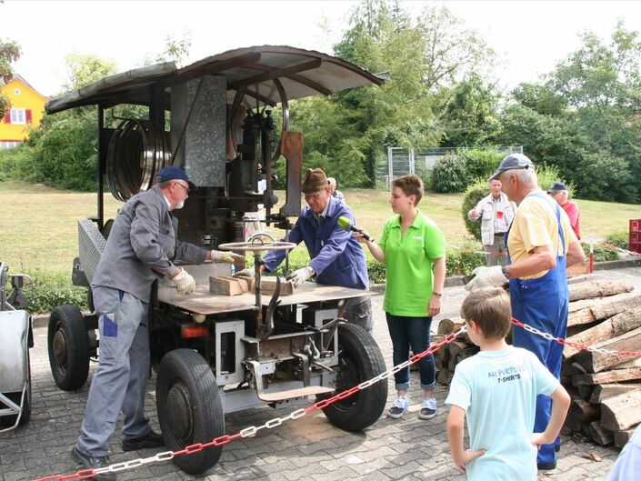 Stober, der Vorführung der historischen Säge von Richard Heger, lustigem