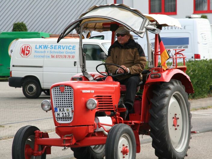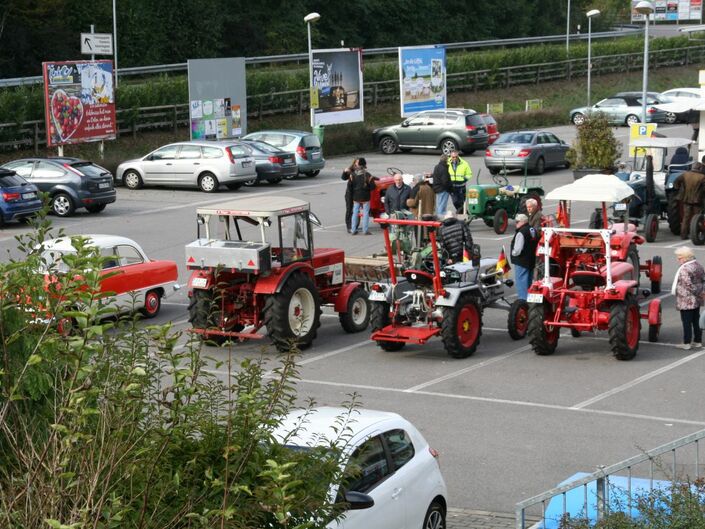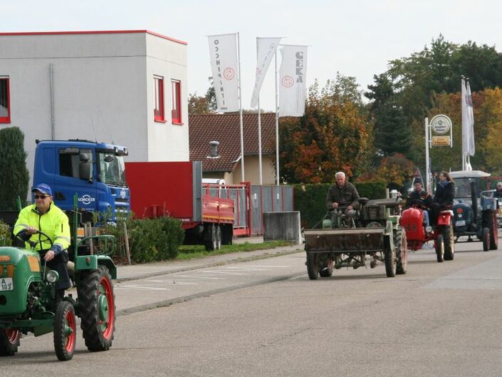 gemeinsamen Ausfahrt. Sie fuhren in einer aufsehenerregenden Traktorenparade