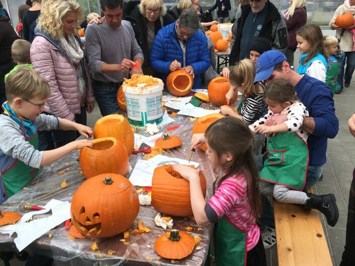 Großer Andrang herrschte beim Coro Accelerando im Gartencenter, wo Kinder mit Begeisterung Kürbis schnitzten zugunsten eines Kinderprojektes der UNICEF.