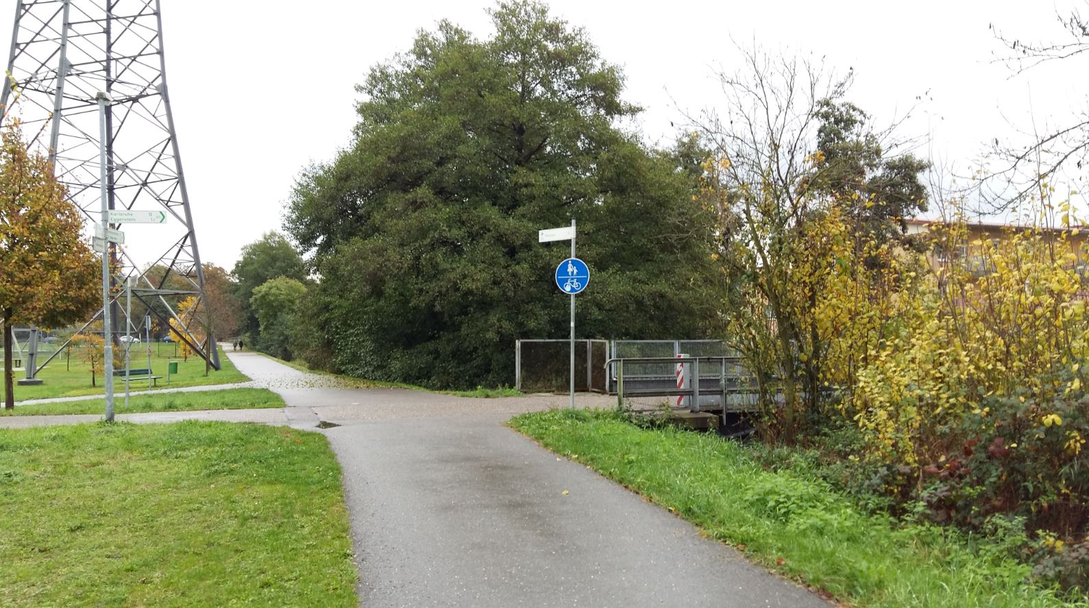 Pfinz-Entlastungskanal verläuft. Sie gehört unserer Gemeinde, die meisten anderen Brücken im Gemeindegebiet gehören dem Land. Die Stahlträgerrostbrücke verbindet den Fußweg des AWO Seniorenzentrums mit dem Fußweg zum nördlich