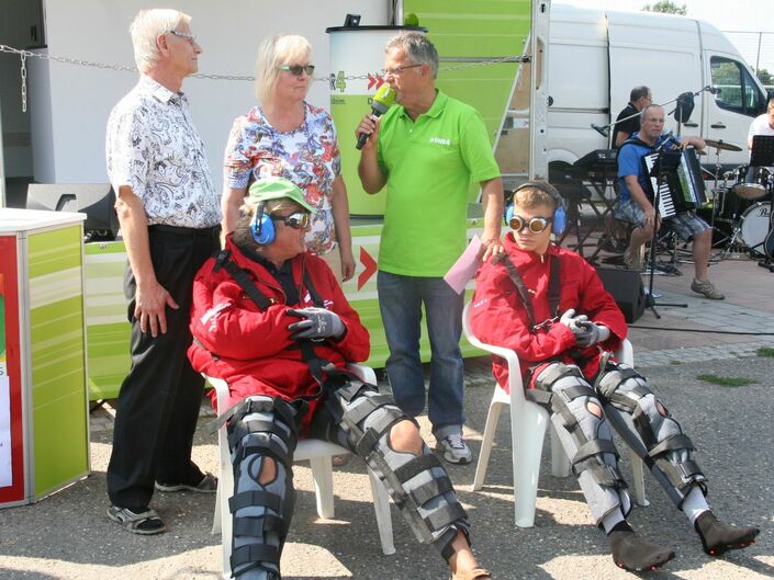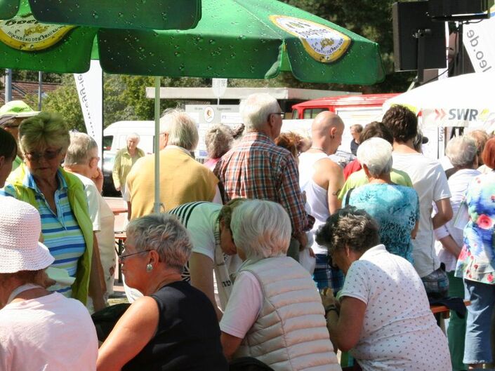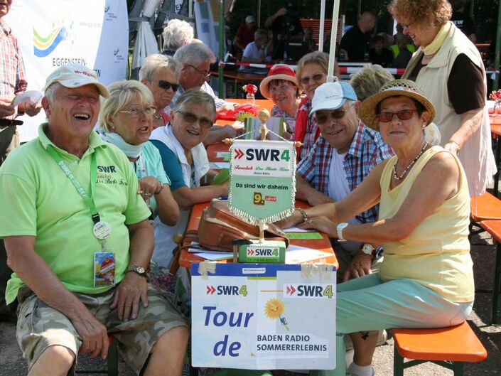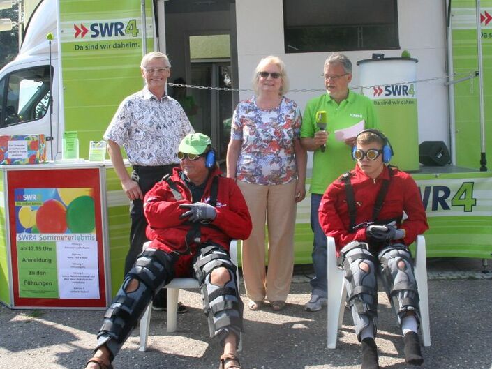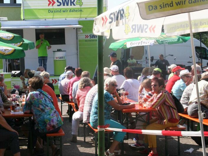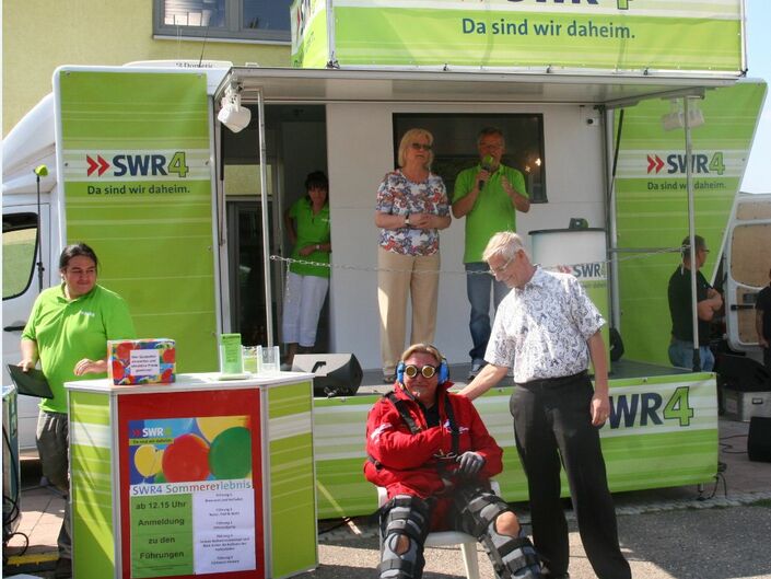 Einen wunderschönen kurzweiligen Nachmittag erlebten die Gäste des SWR4-Sommererlebnisses in Eggenstein-Leopoldshafen. Hochinteressante Führungen, Vorführungen von Karate und Alterssimulationsanzügen, Lustiges mit den Grabbeschnawwl, tolle Musik von Vorsicht Vier und die lockere Art der SWR4-Moderatoren Winni Bartsch und Thorsten Helber ließen die Zeit wie im Flug vergehen. Der FC Alemannia zeigte sich wieder als hervorragender Gastgeber.