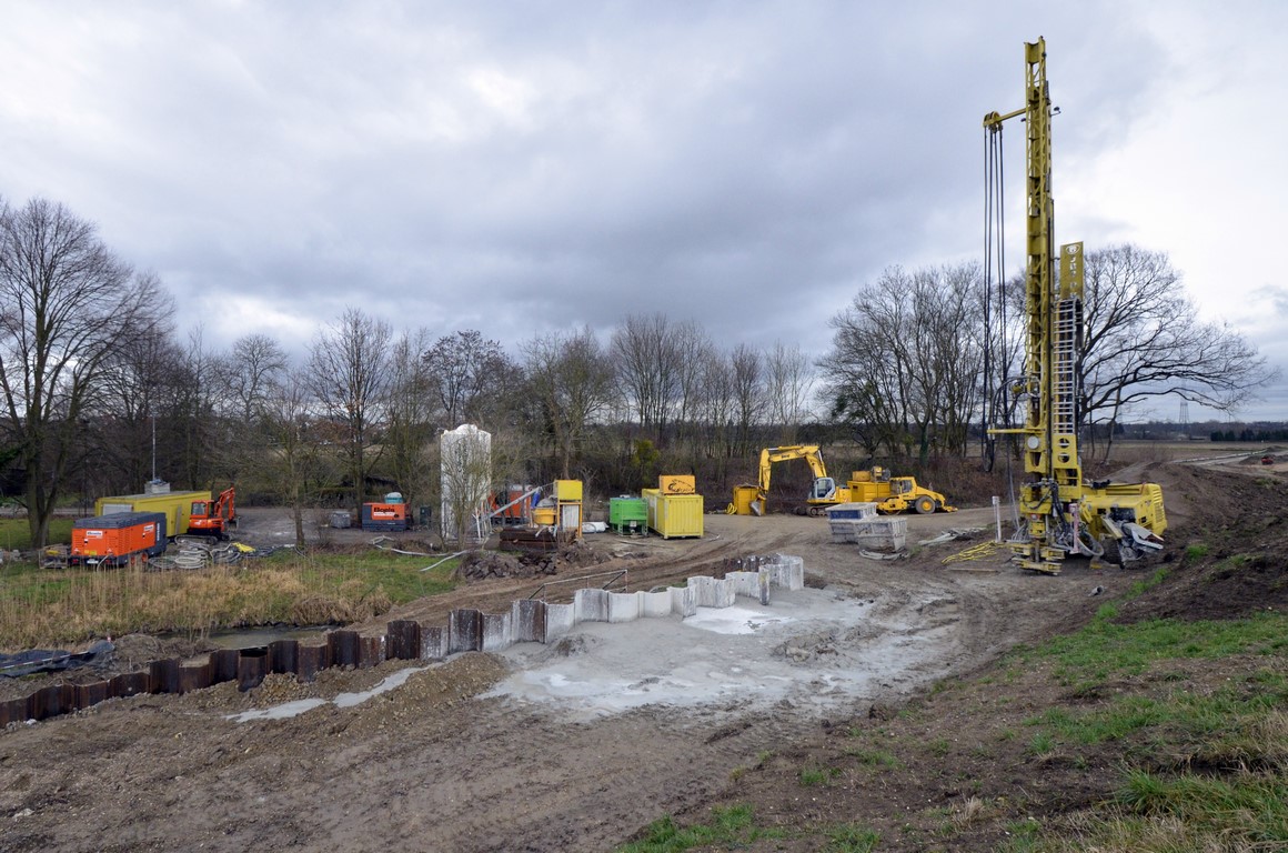 Hochwasserfall die Erreichbarkeit des Dammes mit schweren Fahrzeugen sicher. Der Rheindamm wird etwas höher und vor allem breiter