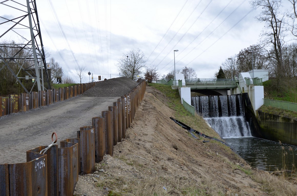 „Eine der wichtigsten Fragestellungen war für uns die Regelung der Baustellenzufahrten, denn es ist mit einem hohen LKW-Aufkommen zu rechnen“, hebt Jürgen Ehrmann hervor. Die ursprüngliche Planung sah bis zu 3 Zufahrten durch den Bereich Hafenstraße, Blumenstraße und Wiesenstraße vor. Auf Initiative der Gemeindeverwaltung beschloss das Regierungspräsidium den Bau der Rampe beim Stauwehr der Kreisstraße 3580 für circa 320.000 €. Sie wird etwa 5 m breit und etwa 65 m lang und kann nach Bauende von Spaziergängern und für die Dammunterhaltung oder -verteidigung genutzt werden. Ein Geländer bekommt sie später natürlich auch noch.