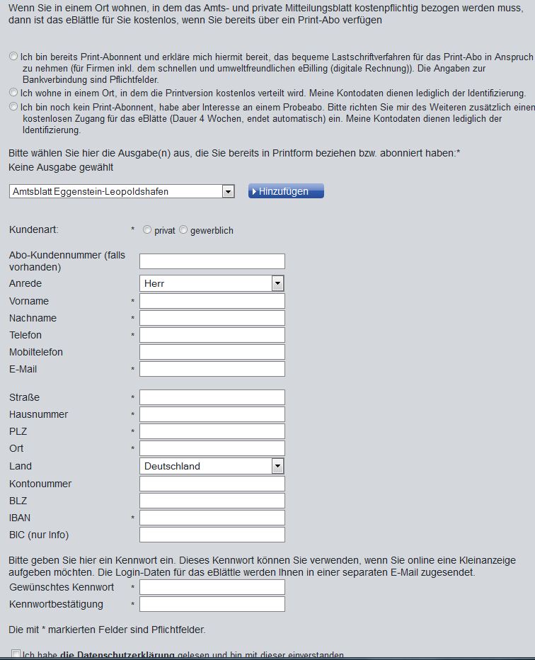 Für Abonennten gibt es eine Onlineversion des Amtsblattes. In der Einführungsphase können die einmaligen Bearbeitungsgebühren für die Einrichtung des Online-Zugangs gespart werden.