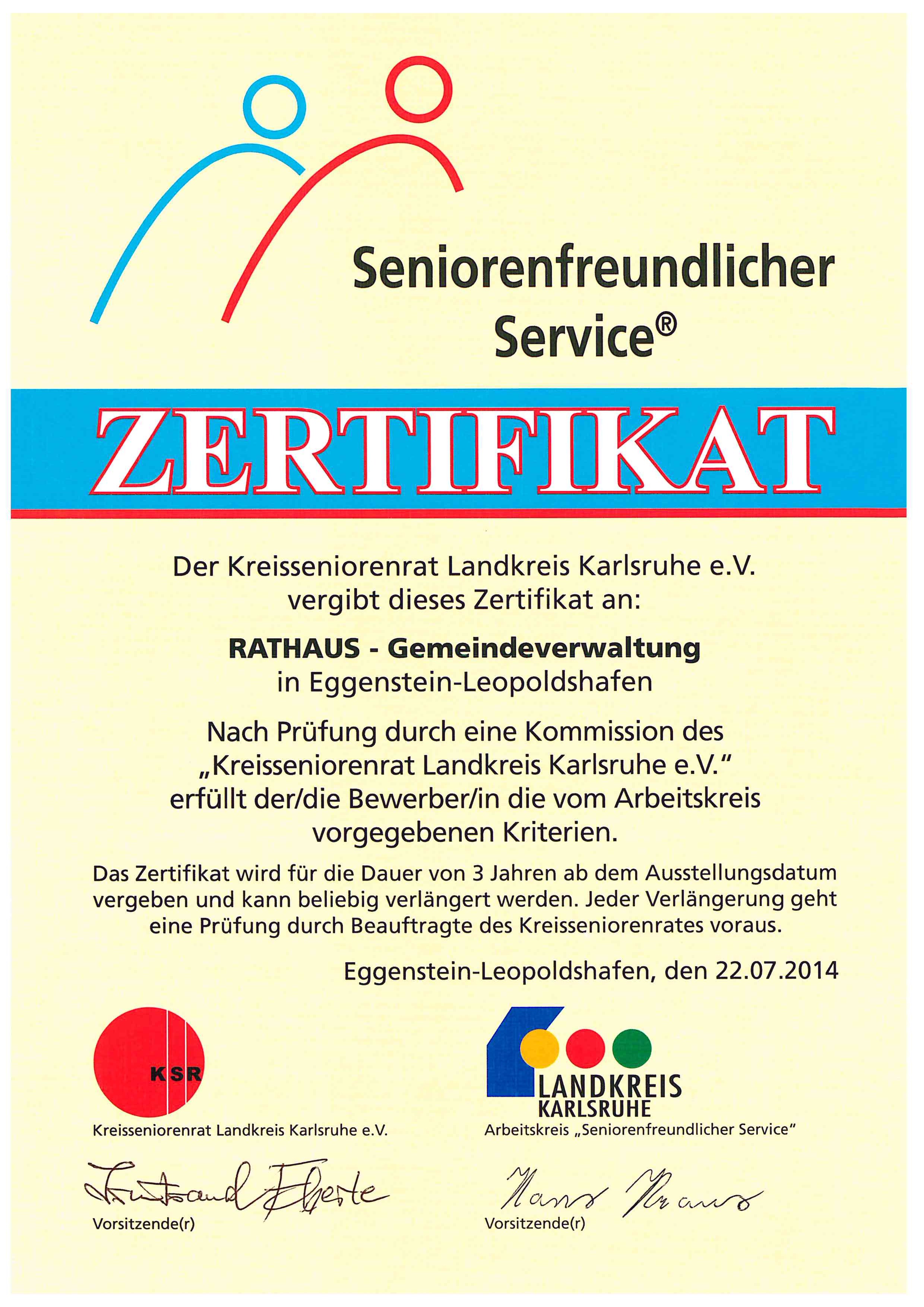 Karlsruhe, in Ihrem Prüfbericht zur Zertifizierung „Seniorenfreundlicher