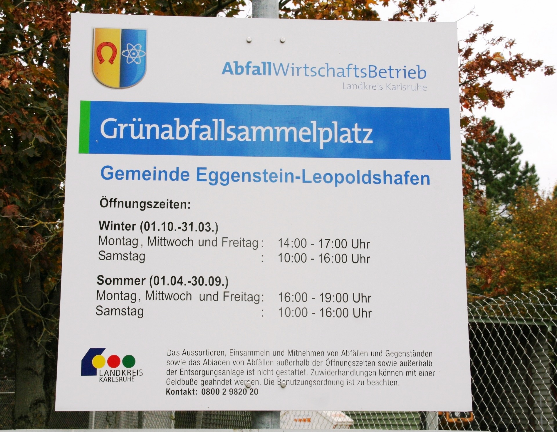 Am Grünabfallsammelplatz am Klärwerk in Leopoldshafen können Privatpersonen ohne gesonderte Gebühr Grünabfälle anliefern. Die Menge darf hier 5 cbm pro Anlieferung nicht überschreiten.