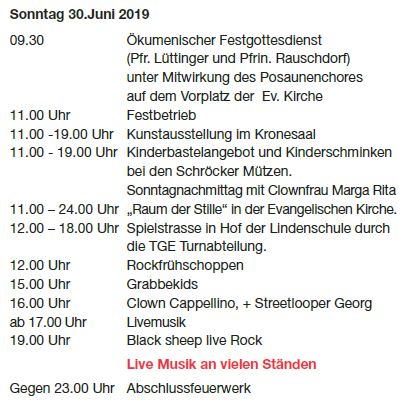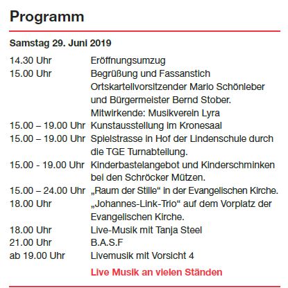 Das nächste Straßenfest ist - wie immer - am letzten Wochenende im Juni,
