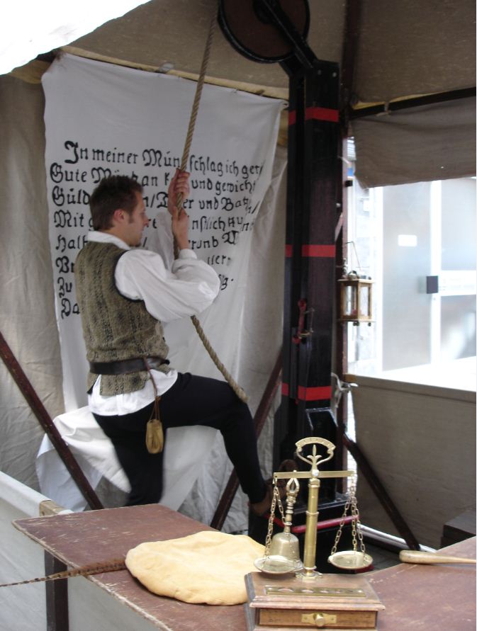 Der drei Meter hohe und rund 500 kg schwere Fallhammer wurde zwischen dem 14. und 16. Jahrhundert zum Prägen von Münzen und Medaillen benutzt.
