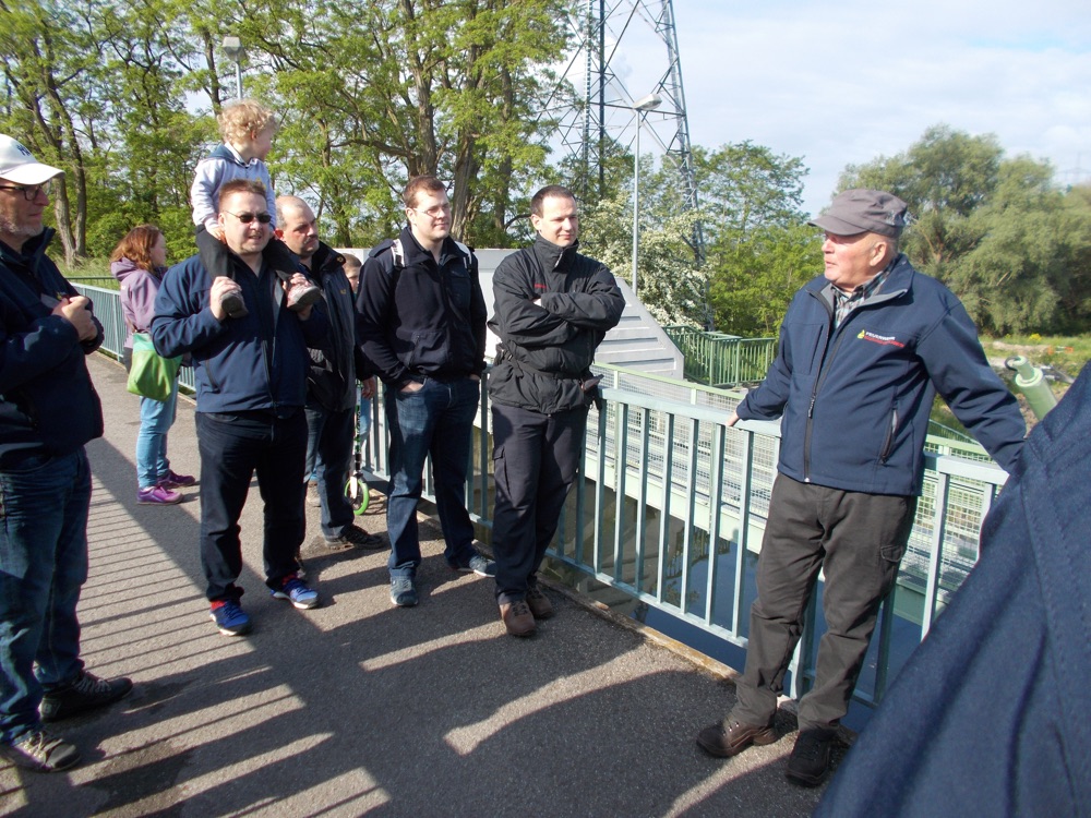 Mit Geschichten aus dieser Zeit im Gepäck, ging es zur Brücke über den Pfinzentlastungskanal. Hier erfuhren wir „Jungen“, dass der Kanal der Hochwasserentlastung des eigentlichen Flusses Pfinz dient und in den 30er Jahren vom damaligen Reichsarbeitsdienst angelegt wurde. Auch hier wusste Ewald das eine oder andere interessante Detail. Nun ging es aber weiter zu unserem eigentlichen Ziel – dem neuen Heimathaus.