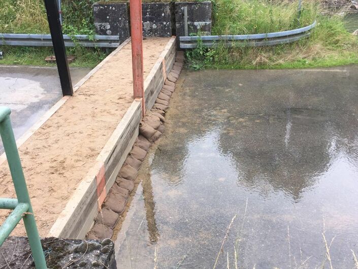 Am Morgen des 17. Juni 2016 zeichnete sich am Pegelstand Maxau, der zur Bewertung der Hochwasserlage in Eggenstein-Leopoldshafen hauptsächlich als Anhaltspunkt genommen wird, eine deutlich erhöhte Hochwasservorhersage von über 8,10 m ab, wodurch eine Schließung der Dammdurchfahrt erfolgen musste.