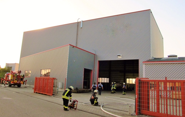 Am Dienstag, 13. September 2016 gegen 17.15 Uhr wurden beide Einsatzabteilungen der Freiwilligen Feuerwehr Eggenstein-Leopoldshafen von der Feuerwehrleitstelle Karlsruhe mit dem Alarmstichwort „Arbeitsstättenbrand“ in die Siemensstraße alarmiert. Bei Eintreffen der ersten Einsatzkräfte war eine starke Rauchentwicklung aus dem Innenbereich einer Montagehalle wahrnehmbar.