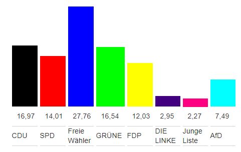 Die Mitglieder von den Gemeinde·räten gehören verschiedenen Parteien und Wähler∙gruppen an.