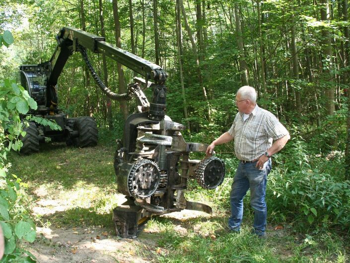 auch mal auf so eine monströse Maschine wie den Vollernter raufklettern.