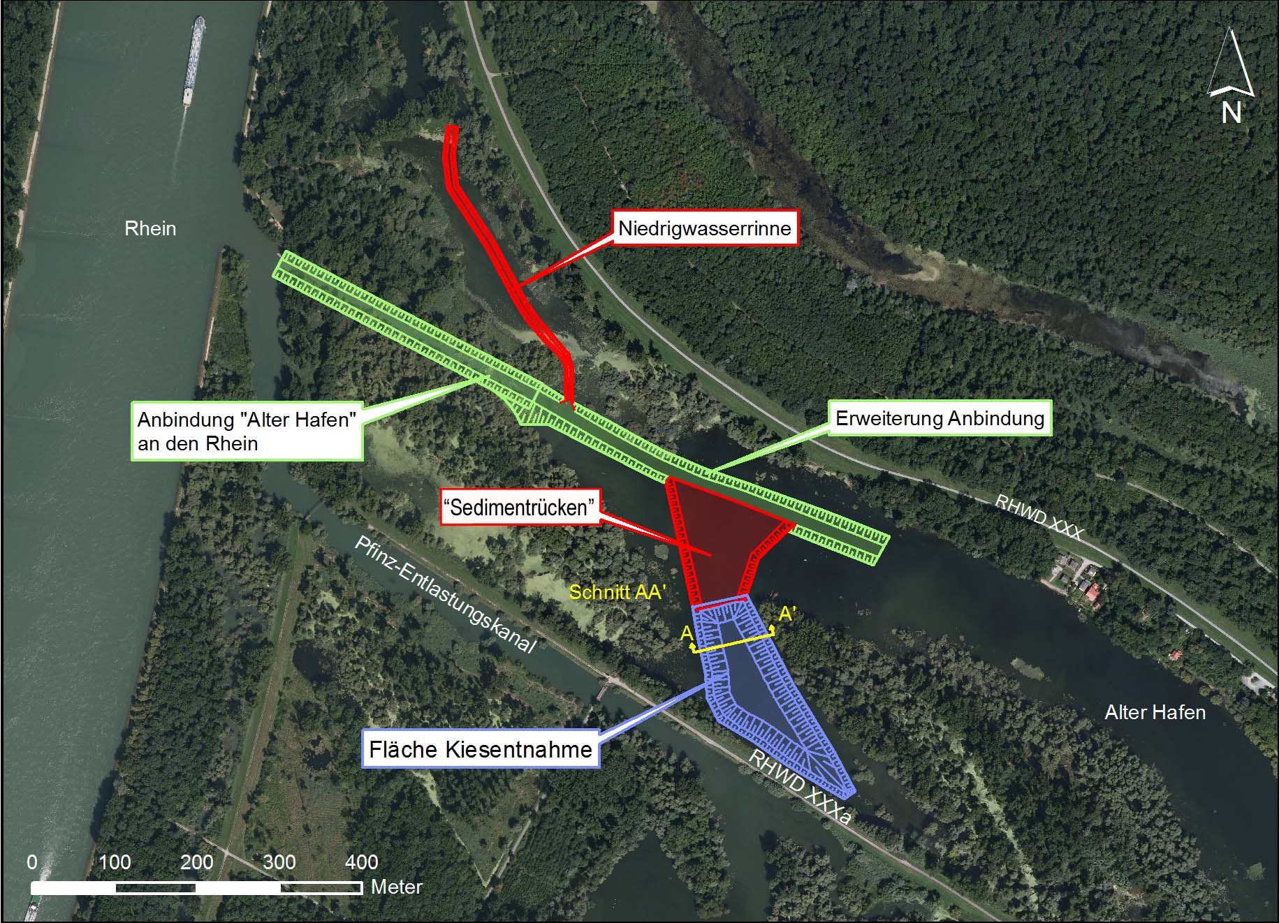 Länge wurden zwischen dem Einlassbauwerk vom Rhein in den Albkanal bis zum Abzweig
