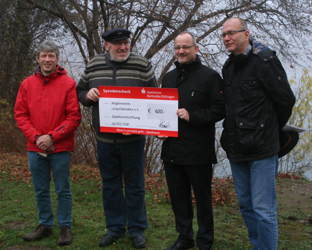 Das Engagement der Mitglieder des Anglervereins Leopoldshafen ist hier beispielhaft. Sie haben dafür noch keine Unterstützung oder finanzielle Aufwandsentschädigung erhalten. Deshalb hat Bürgermeister Bernd Stober den Anglerverein der Stiftung GUTES TUN der Sparkasse Karlsruhe Ettlingen vorgeschlagen. „Wir fördern ausschließlich gemeinnützige Projekte, gerne auch die vielen kleineren Projekte im Naturschutz, die für die Artenerhaltung und –vielfalt wichtig sind wie jetzt hier bei der Wasser-Braunwurz“, erläutert Lutz Boden, geschäftsführendes Vorstandsmitglied der Stiftung „GUTES TUN“. Er überreichte Manfred Gegenheimer den symbolischen Scheck über 620 Euro. Mit dieser Spende aus dem Stiftungsfonds würdigen die Gemeindeverwaltung und die Sparkassen-Stiftung „GUTES TUN“ – Stifternetzwerk der Sparkasse Karlsruhe das gemeinnützige Engagement des Anglervereins Leopoldshafen. Die Sparkasse Karlsruhe Ettlingen hat im Jahre 2009 das Stifternetzwerk „GUTES TUN“ gegründet. Anlässlich ihres 200. Geburtstages hat sie auch für die Gemeinde Eggenstein-Leopoldshafen einen eigenen Stiftungsfonds unter diesem gemeinsamen Dach eingerichtet.