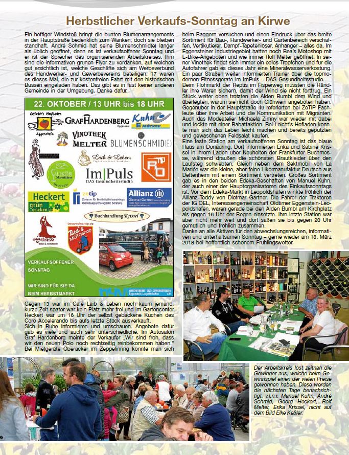 Gerne Sonntagabend oder Montag nach dem verkaufsoffenen Sonntag Bildmaterial mit Genehmigung zur Veröffentlichung an den Arbeitskreis VKOS oder r.hauck@egg-leo.de fürs Amtsblatt senden.